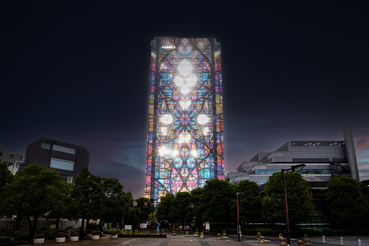 用賀駅直結の GMOインターネットTOWER(地上28階・高さ120m)外壁全面を使用した、初のプロジェクションマッピングを開催いたします。